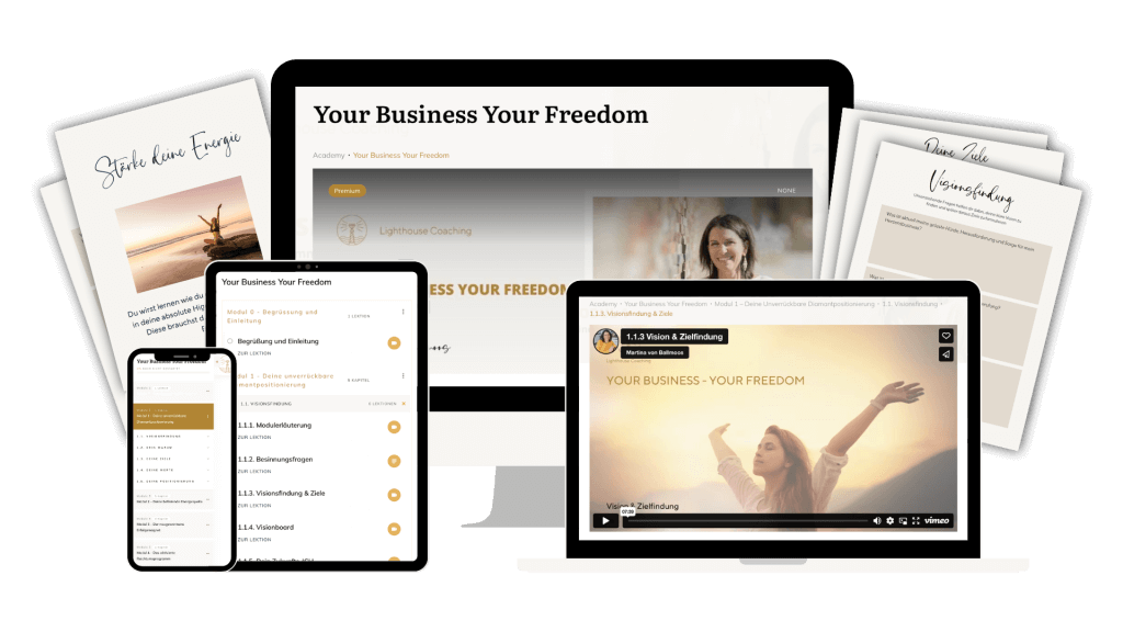 Die Sessions und Q&As sind auf unserer Kursplattform für die gesamte Dauer der Academy und bis zu insgesamt einem Jahr für dich verfügbar. Alle Templates und Dokumente, die wir dir bereitstellen, kannst du natürlich „mitnehmen“, downloaden, speichern und weiterverwenden.